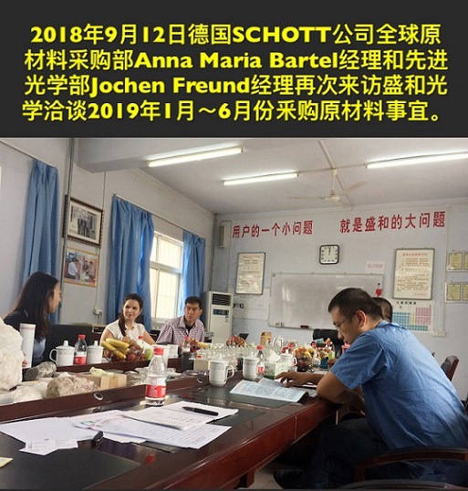 2018年9月12日、ドイツ?ShhTT社の世界原材料購買部アンナマーカー社長と先進光學(xué)部ジョチFreundマネージャーが再び訪れて光學(xué)交渉の仕入れを行ってきた